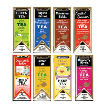 We offer a range of hot tea bag flavors. English breakfast, Earl Grey, Peppermint, Chamomile, Green.