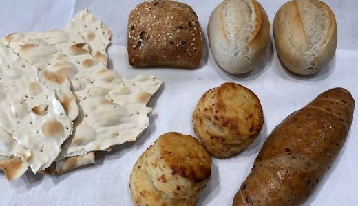 Ensure the bread is warm and fresh. Must be put into the warmer 15 minutes before service starts. In a basket are two mini baguette, two biscuits, one whole wheat stick, one multi grain roll and pieces of Lavash